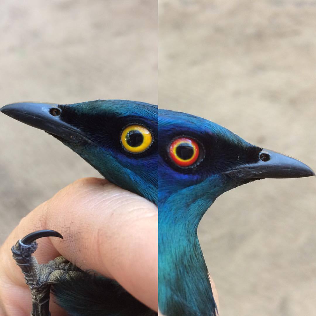 The Black-bellied Starling has an incredible trick up its sleeve… It changes eye color as its moods change! Normally a striking yellow, it can bring out this incredible red fringe when agitated or angry. Watching it change before your eyes can be quite freaky if you are not expecting it! #bird #ornithology #conservation #research #research (at Malala Lodge)